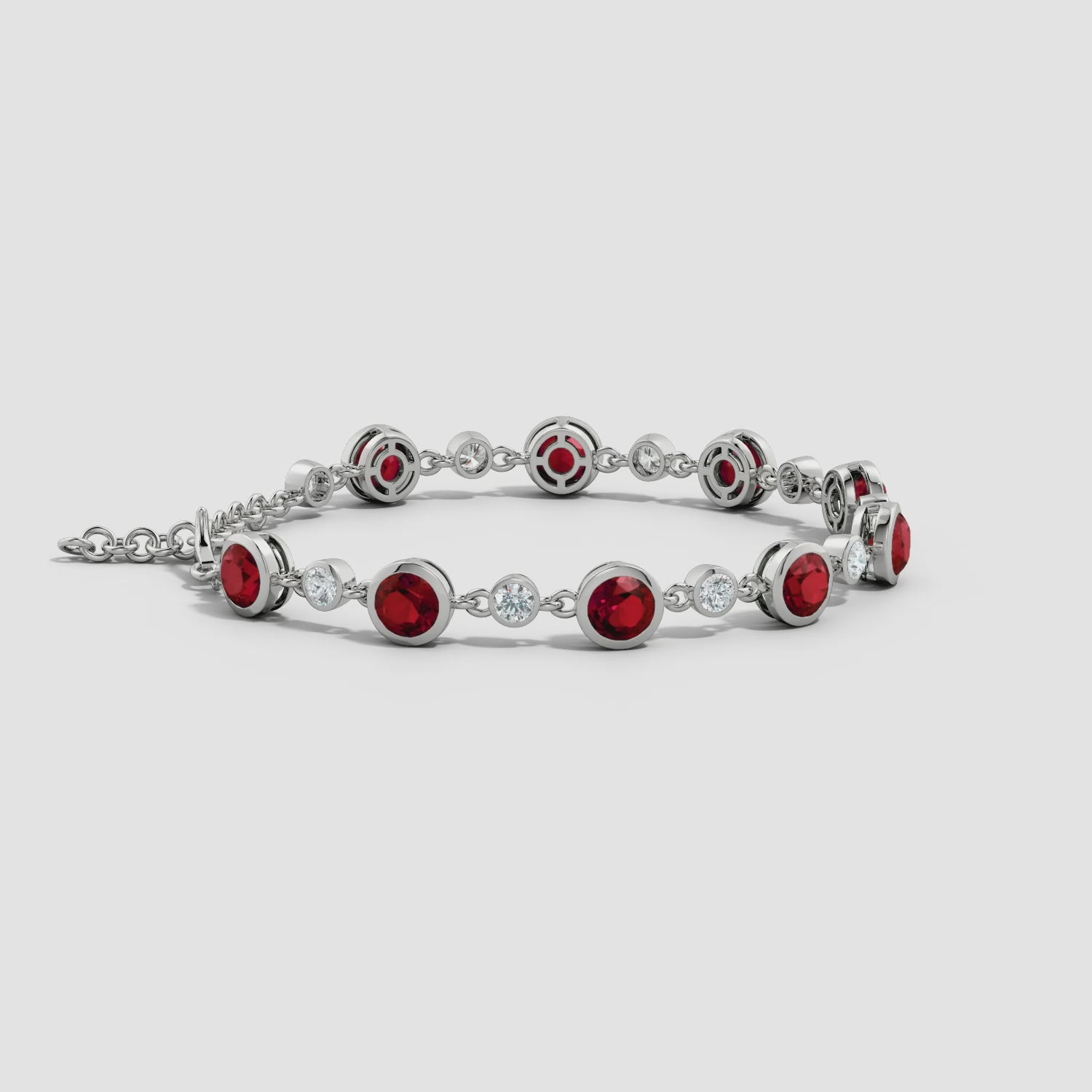 A vibrant balance of colour and brilliance, this tennis bracelet features alternating round rubies and moissanites in a clean, modern bezel setting. The rich red tones of the rubies contrast beautifully with the crisp sparkle of the moissanites, creating a bold yet refined visual rhythm.